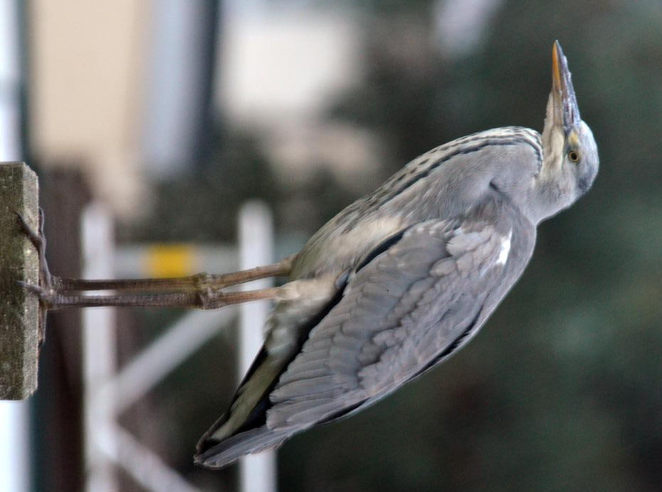 Grey Heron still visiting the garden pond looking for an early breakfast.