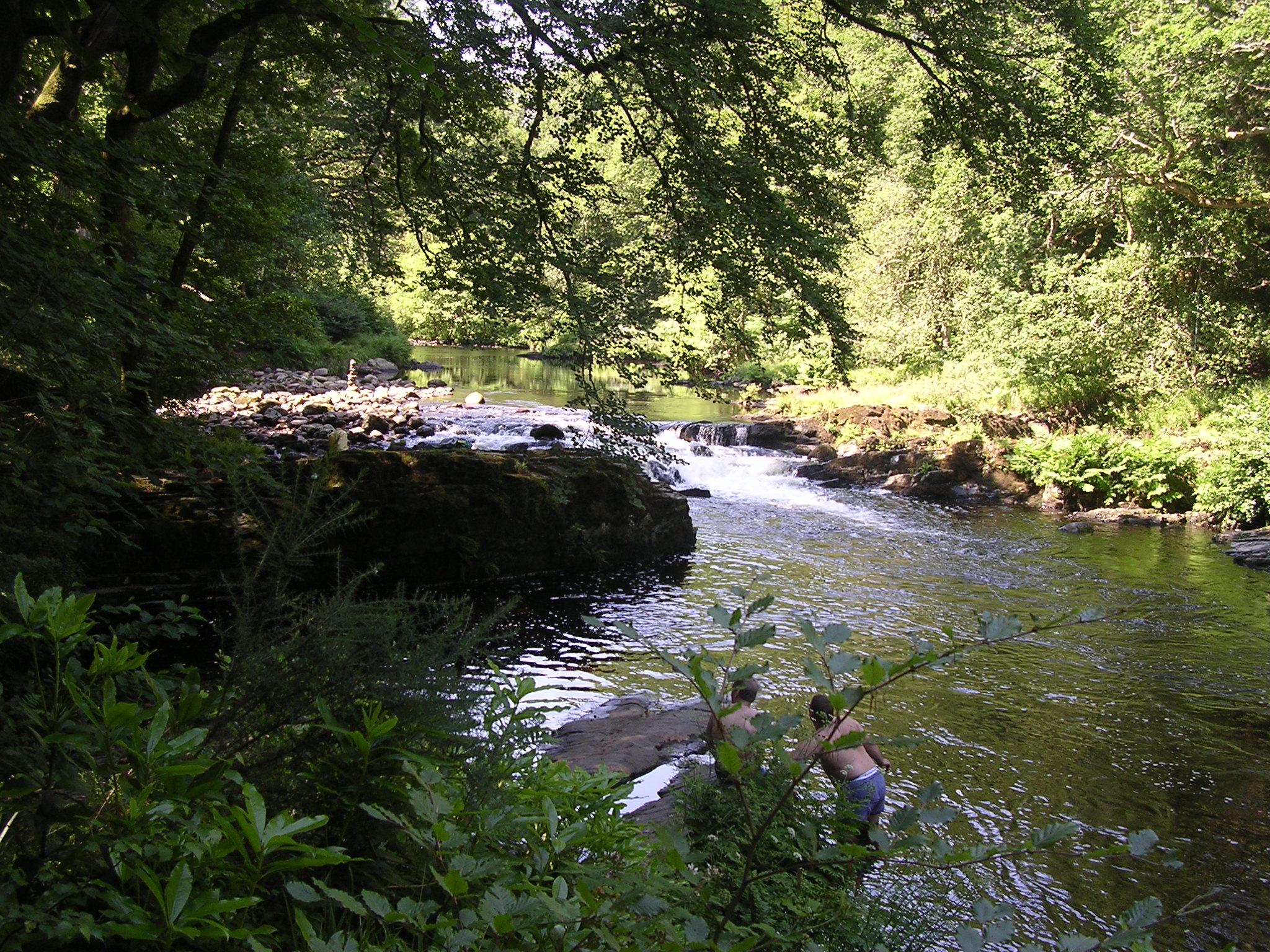 FROM HICKATON HILL (430 METRES) TO PUPERS HILL (470 METRES) AND ON TO THE SNOWDON CAIRNS (500 METRES) BEFORE HEADING DOWN TO THE RIVER MARDLE AND A WELL EARNED BREAK FOR LUNCH. WE RELAXED IN GLORIOUS SUNSHINE AND TREATED OUR FEET TO A REFRESHING DIP IN THE COLD WATER OF THE RIVER.