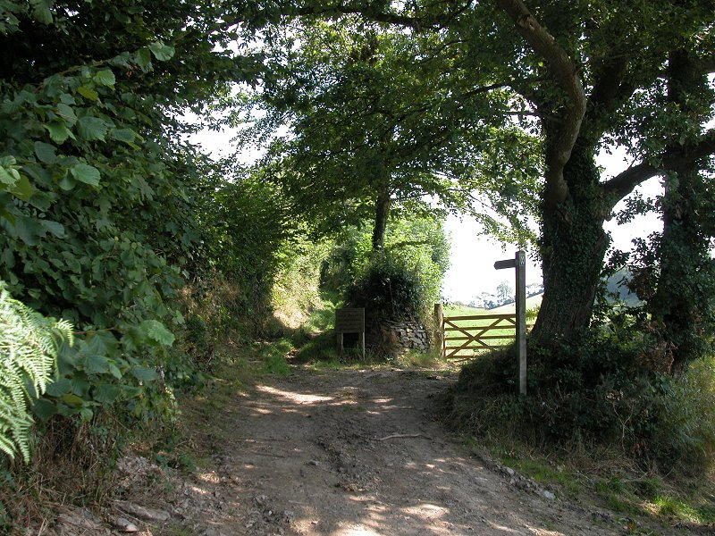 STONY FOOTPATH UPHILL TO A WOODEN KISSING GATE. PASS THROUGH THE GATE AND THERE